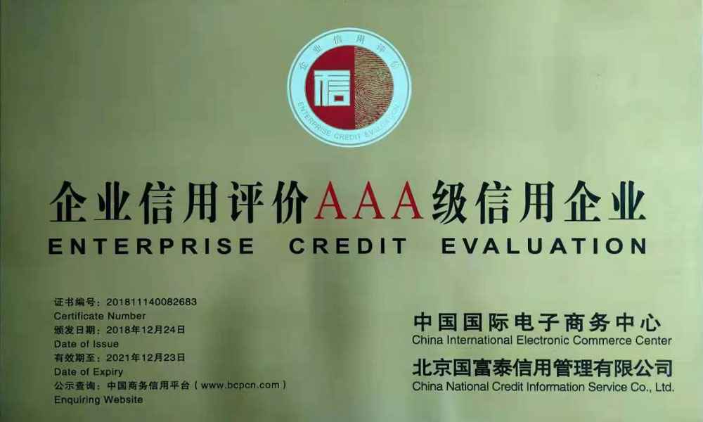 企业信用评价AAA级信用企业